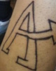 John, circa 2018; John's leg tattoo